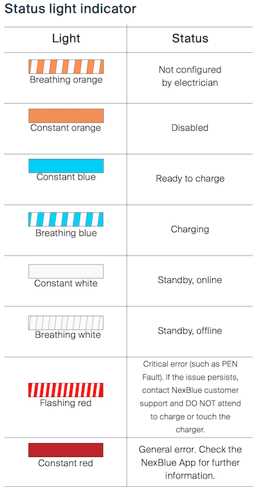 Flashing Red or Constant Red - Contact your installer in order for them to diagnose the issue, or NexBlue customer support.