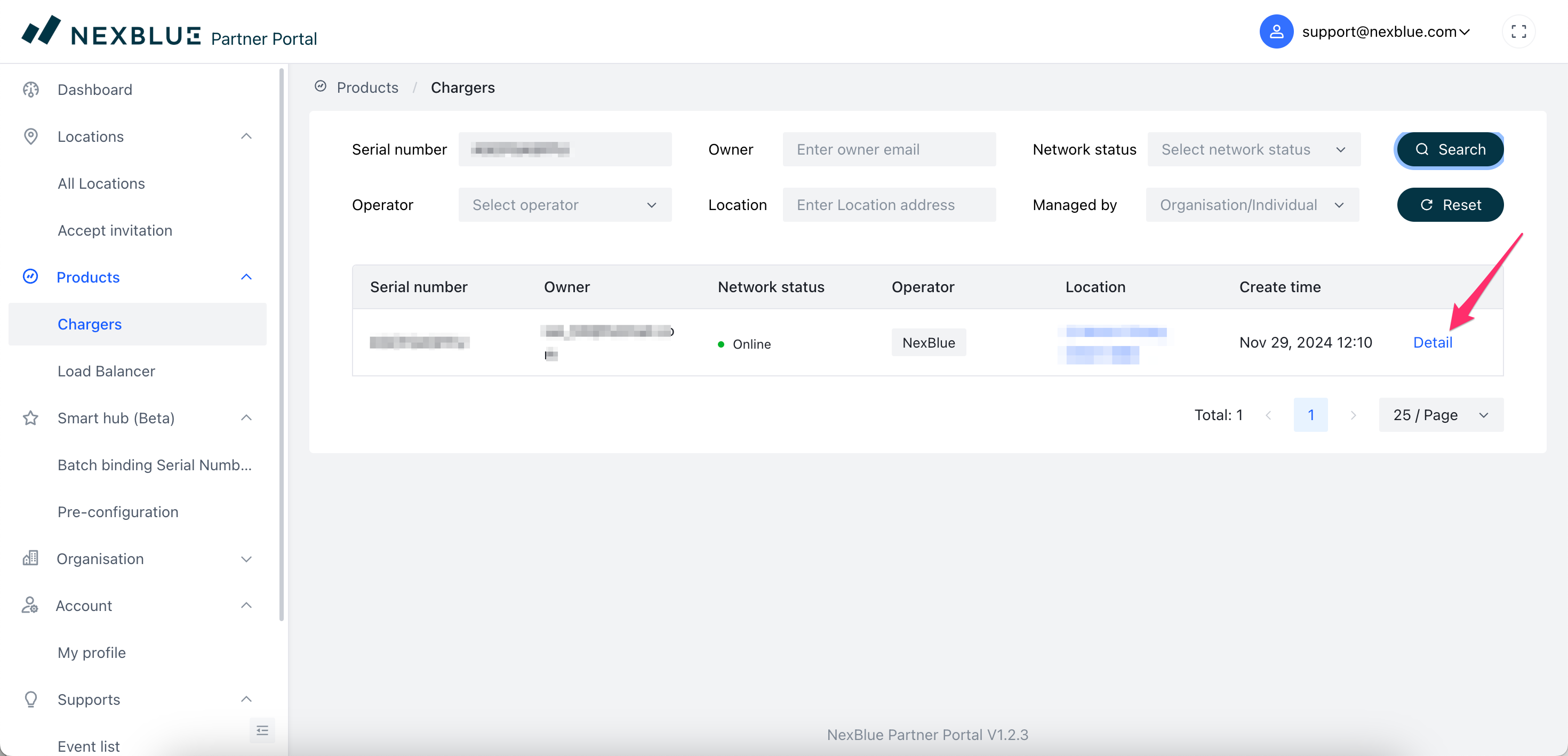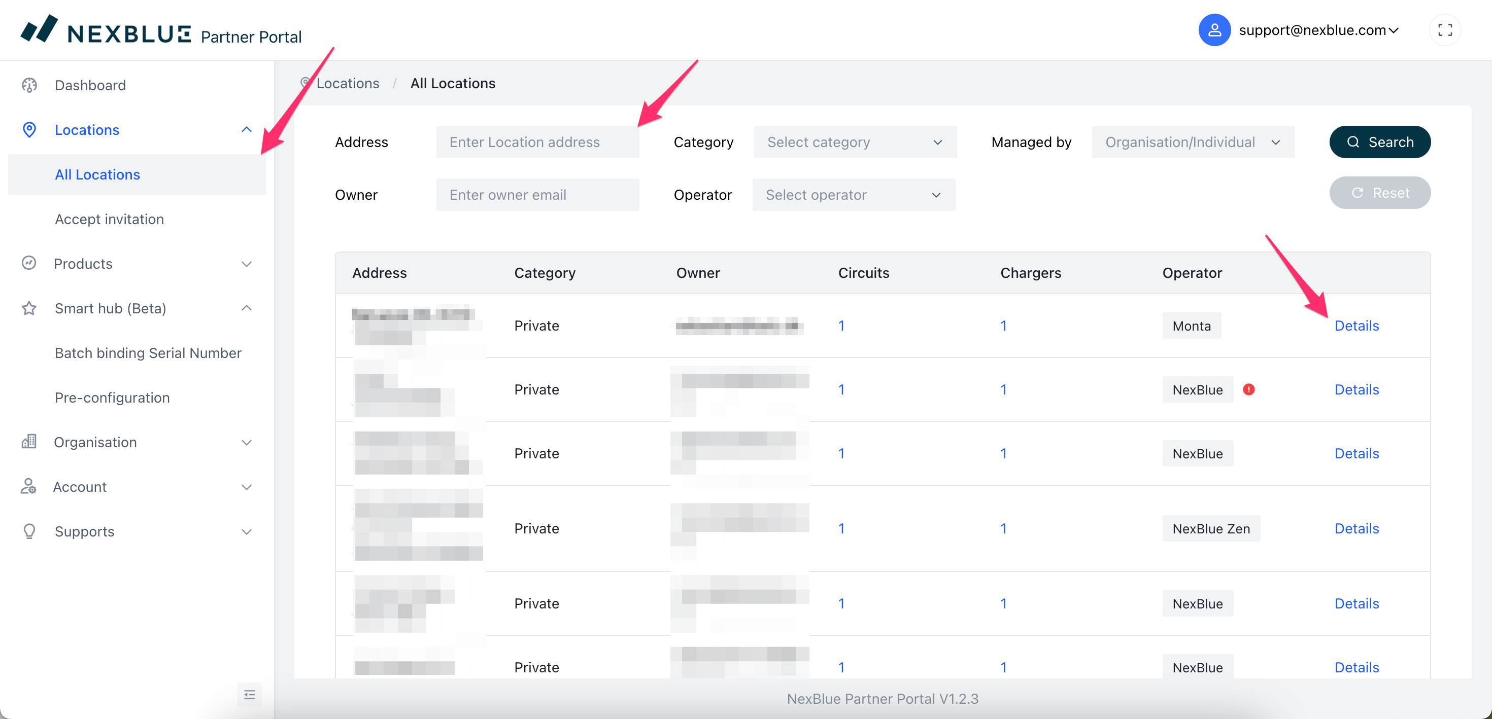 Firstly, log into the Partner Portal with your credentials and find the relevant Location, you can either scroll through to find the customer, or use the filters at the top of the page.