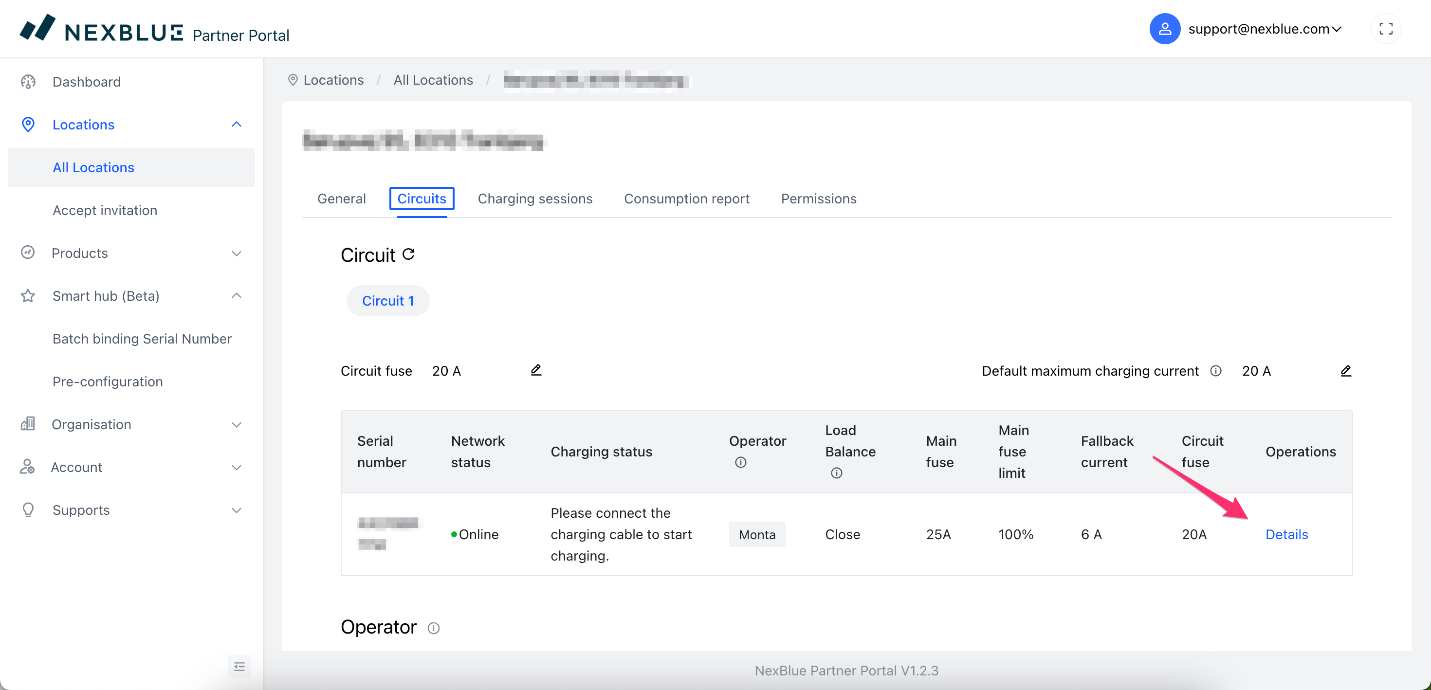 Once you have accessed the intended Location, find the specific product you are wanting to check. Firstly go to the circuits tab, then click "details" for the product that seems to be having the issues.