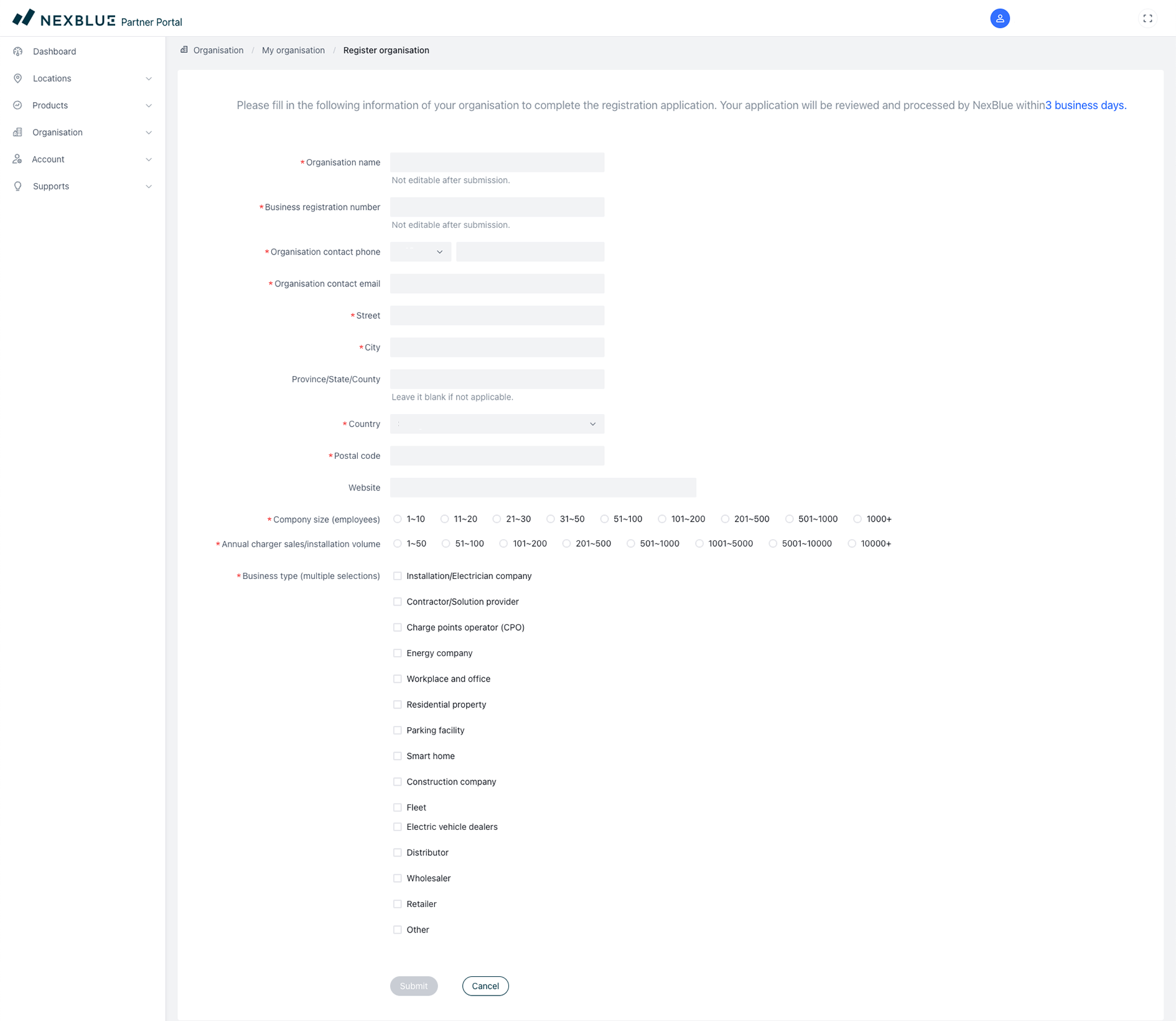 With organisations, you have access to any installations within your network, as and when they are completed. This is great when it comes to a large organisation utilising contractors for their installations. As soon as an installer who is part of your organisation configures a charge points through the NexBlue Partner App, it will become visible through your portal view also.