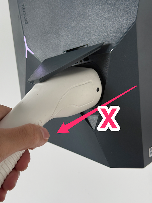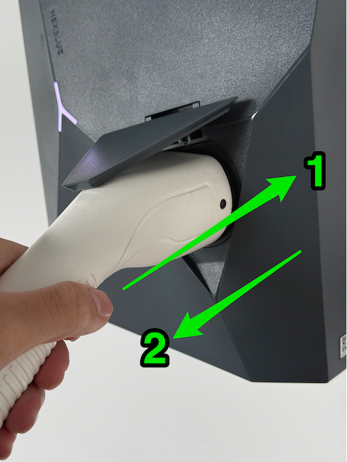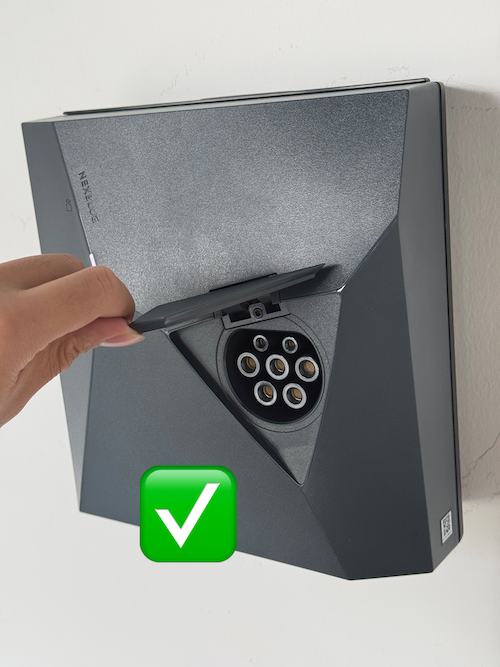 All that is needed to remove the cable is to push the cable forwards into the socket, this releases the mechanism, then simply pull the cable back out and it should successfully free from the socket. Ensure that next time the socket as been released successfully through the myNexBlue app and is ready to be removed before pulling it.