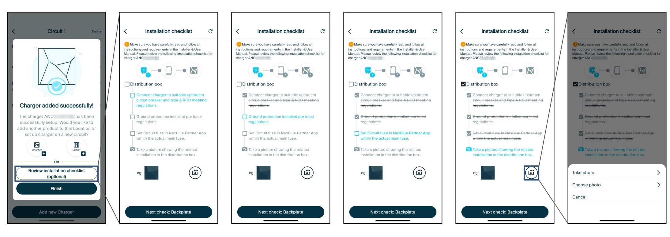 NexBlue have built in an installation checklist to the NexBlue Partner App. This is to help any installers or partners ensure they remember the necessary steps to correctly install a NexBlue charge point. NexBlue does not take responsibility for installations, thats why we work with such a great network of high quality businesses, however we want to support as much as we can, in as many ways as we can; hence the use of an installation checklist.