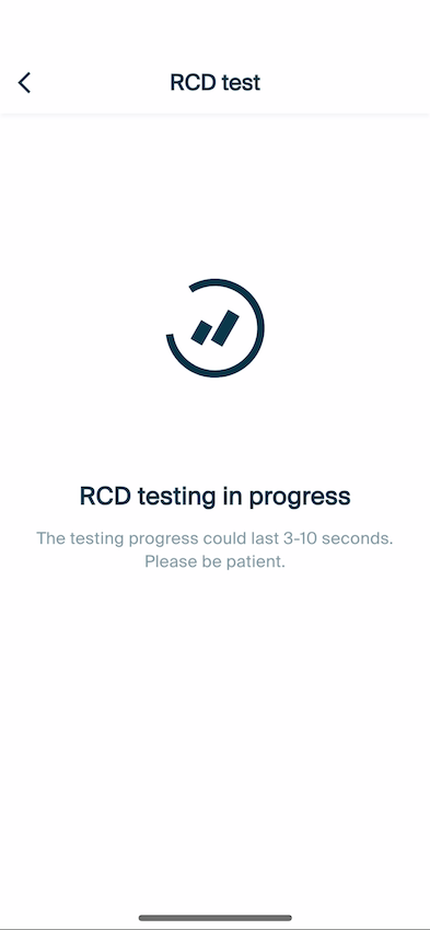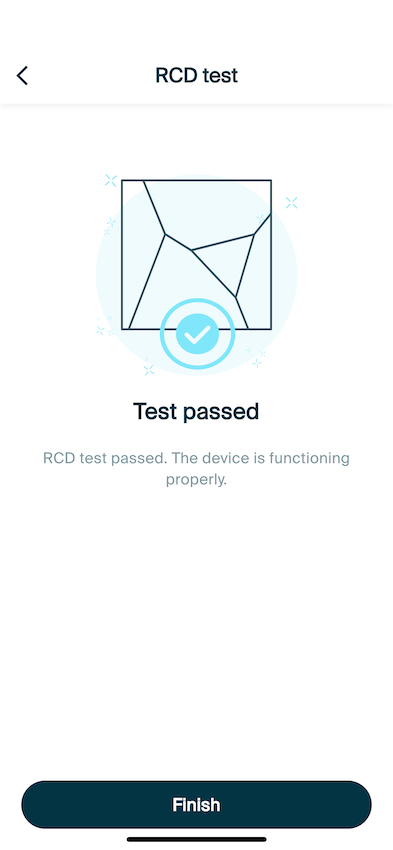 Once the button has been pressed, the App will then take over again, with the RCD test taking between 3 and 10 seconds, followed by a screen to show the test was successful